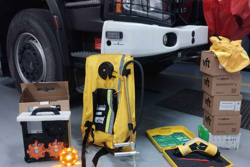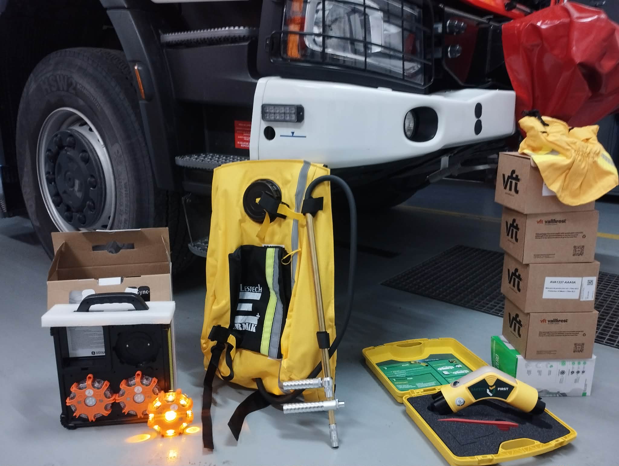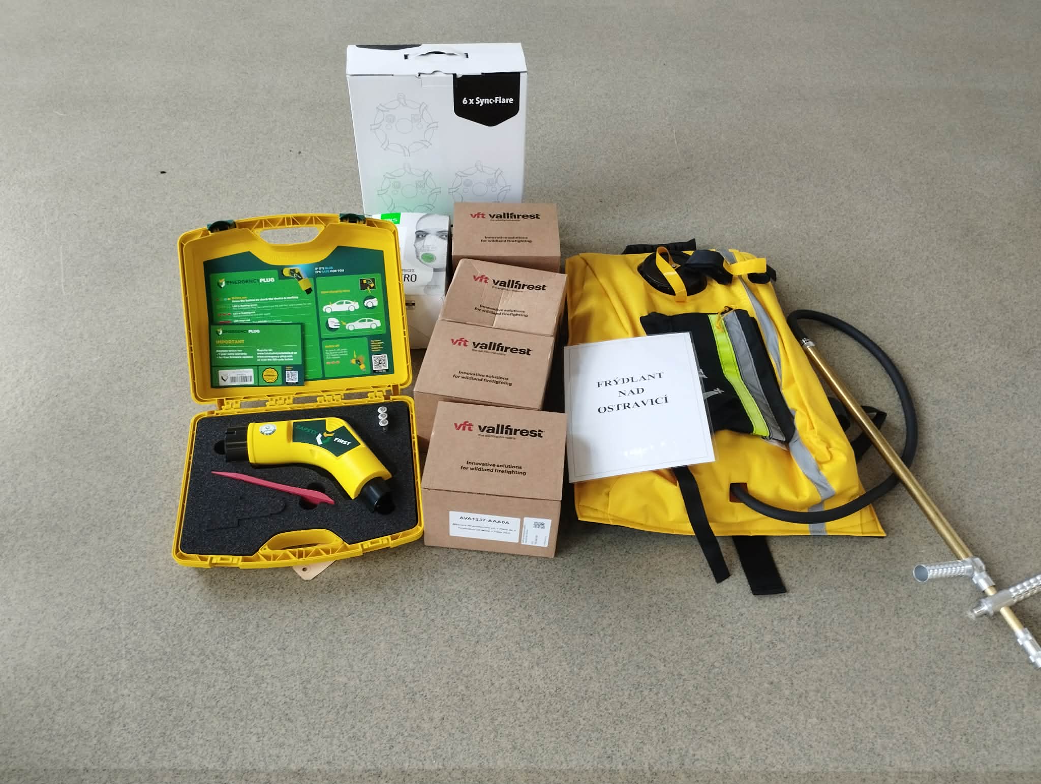 Z prostředků k dopravním nehodám se jedná o světelné puky, kterými označujeme místo nehody. Dále emergency plug, který slouží k zajištění vozidel s elektrickým pohonem proti pohybu. Pro hašení lesních požáru jsme získali zádový vak na 25 litrů vody a ochranné masky proti kouři.
