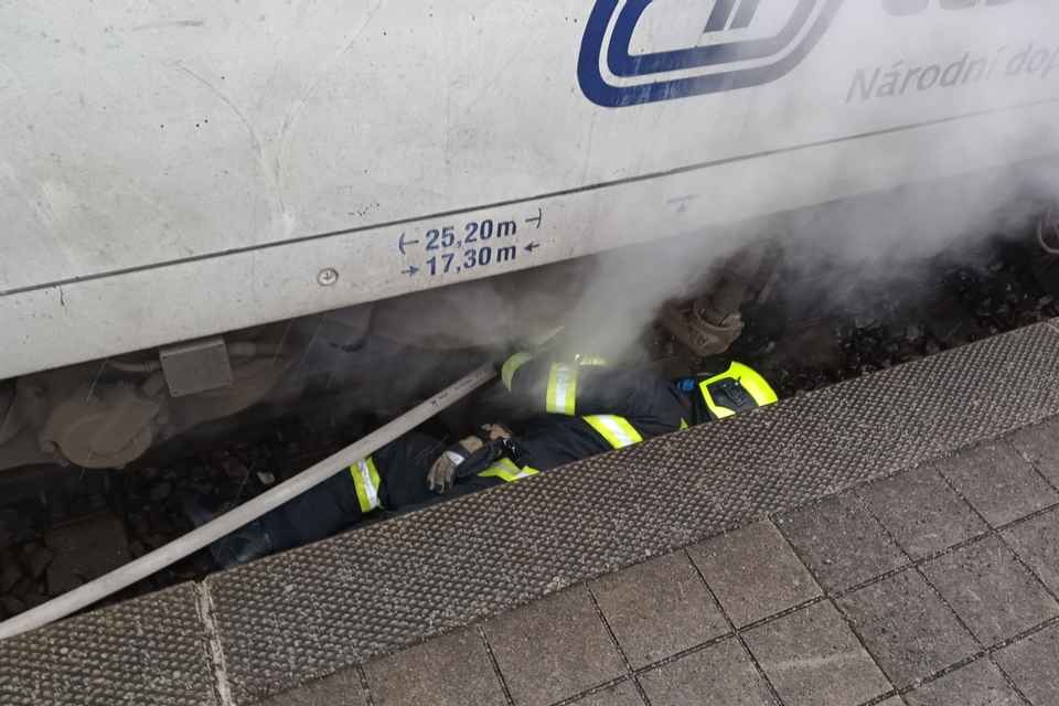 Po příjezdu na místo bylo průzkumem zjištěno, že se jedná o zahoření jednoho z podvozků vlakové soupravy. Pravděpodobně vlivem závady na brzdovém systému. Strojvedoucí se ještě před naším příjezdem pokusili požár uhasit pomocí přenosných hasicích přístrojů, ale bez úspěchu. My jsme k likvidaci nasadili jeden proud „C“. Současně jsme zkontrolovali celou soupravu, zda se uvnitř nenachází cestující nebo personál – vlak byl v době zásahu prázdný.